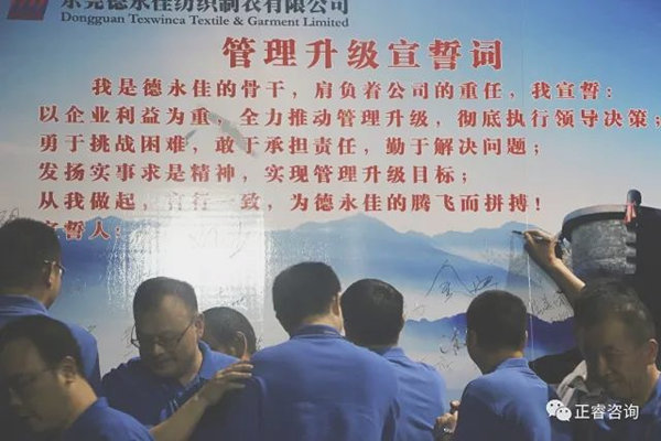德永佳公司各部門負責(zé)人在誓詞前簽名,管理升級正式拉開帷幕!