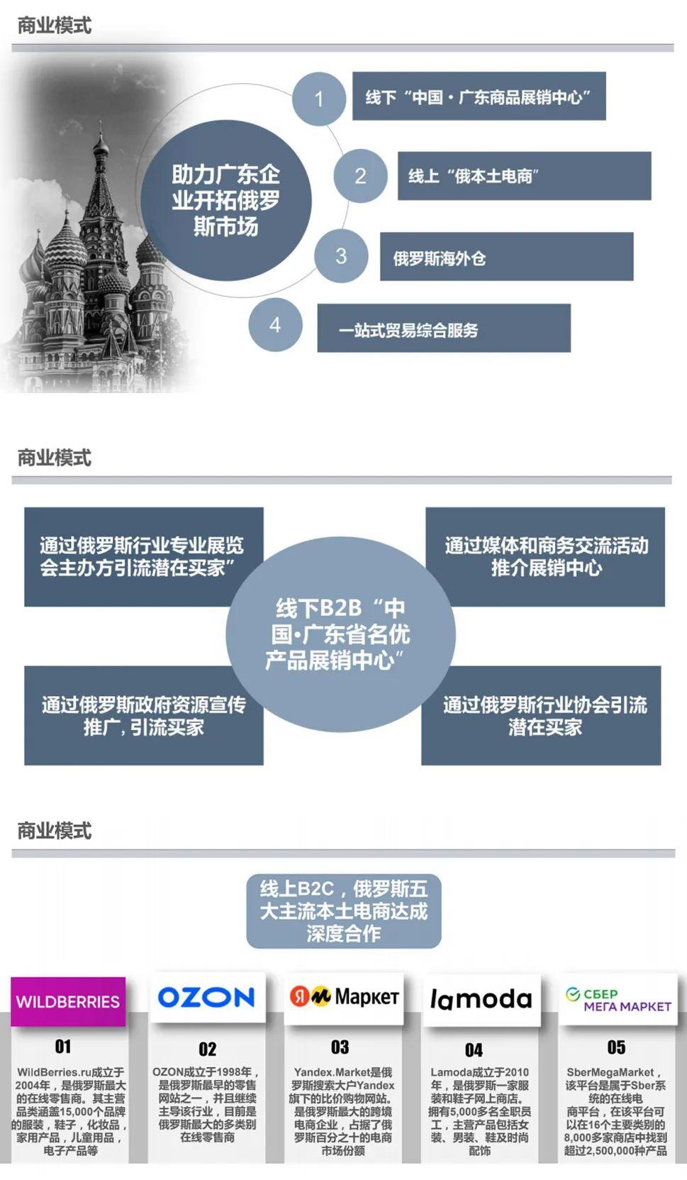 其中也包括建立廣東俄羅斯線上銷售平臺(tái)“俄羅斯粵商城”,為廣東品牌提供在線銷售渠道,幫助廣東企業(yè)產(chǎn)品入 駐俄羅斯本土電商平臺(tái)